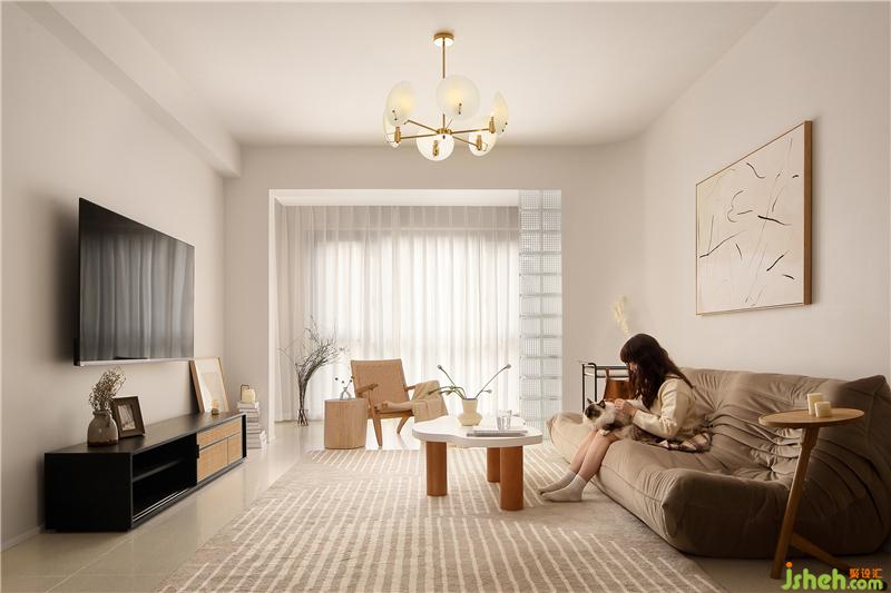 来到客厅,一组养眼的色彩瞬间映入眼帘,奶油的温润,南京室内设计师搭配暖白色、奶咖、木质家具,奠定了全屋风格的基调。整体空间在简约的基础上,透露出淡雅柔和的平衡,分分钟柔软又高级。