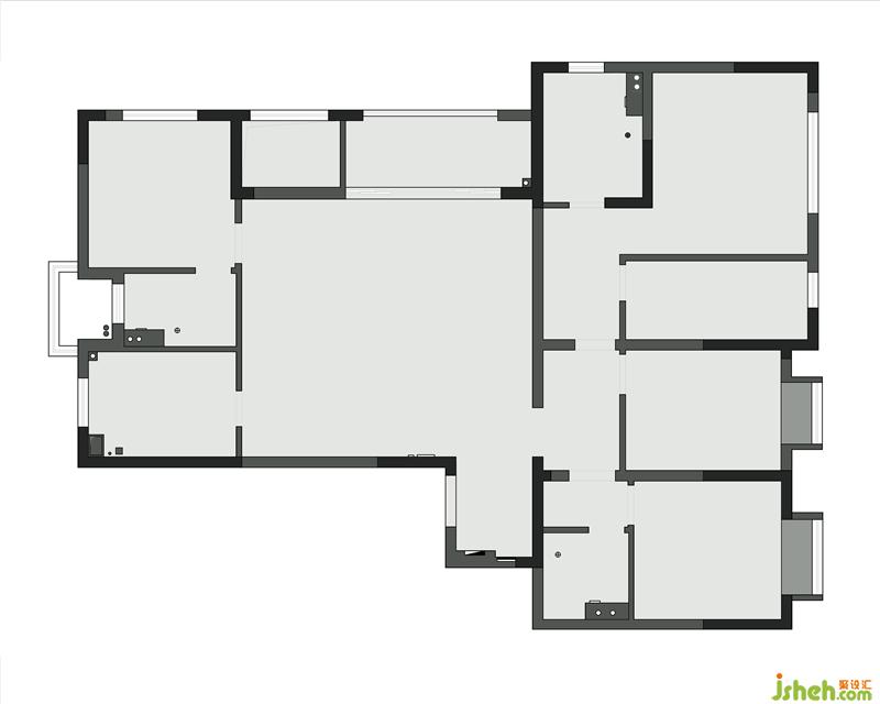 5.休闲室进门位置和洗衣房一侧的墙体整体向客厅外拓,使其在一条动线上