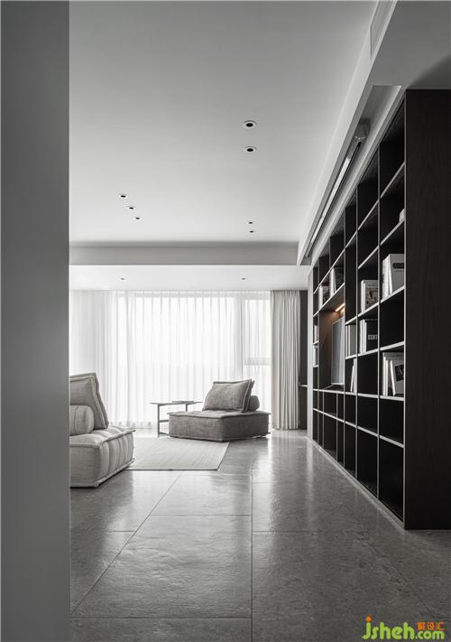 6.客厅通往书房的墙体拆除,设计了一处开放式的书房
