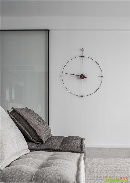 留白的墙面安装上一个极简挂钟,不单纯只是简单的看时间,更是一件装饰的艺术品,优雅有质感,提升了空间的档次。