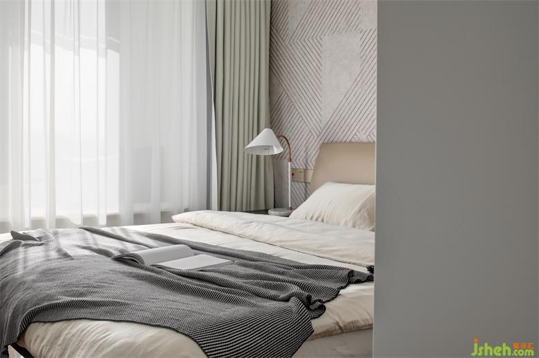 来到卧室,一款白色的台灯映入眼帘,精致简约的造型,搭配于浅色系的空间之中,丰富空间的视觉层次。米白色的床品,带来一种放松无压的氛围,进入卧室就感受一份到温暖宁静。