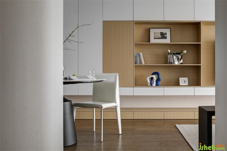 电视背景墙采用隐藏式柜体+展示柜+电视的组合设计,整面墙看起来更“整齐划一”,封闭式的柜子内可以存放一些比较散乱的东西,而开放格+底部镂空位置就可以摆放装饰品、书籍等,南京家居设计提升空间的艺术品味,适当的开放式展示架又能增添层次感和轻盈感,给人一种灵活多变的空间效果。木色更好的融入白色之中,中和了空间带来的疏离感,南京家居设计让客厅多了一份温润柔和,有了家的包容性。