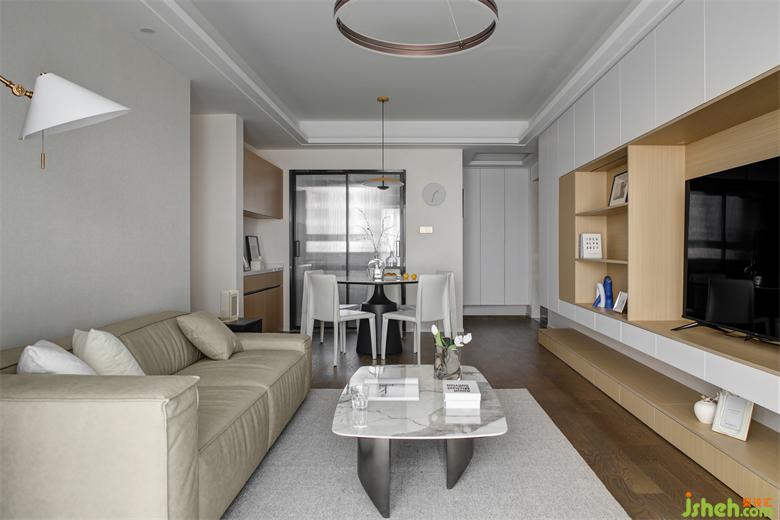 客厅与餐厅联通,运用白色和木色营造的简约空间,南京家居设计让舒适与静宁萦绕于整屋之中。