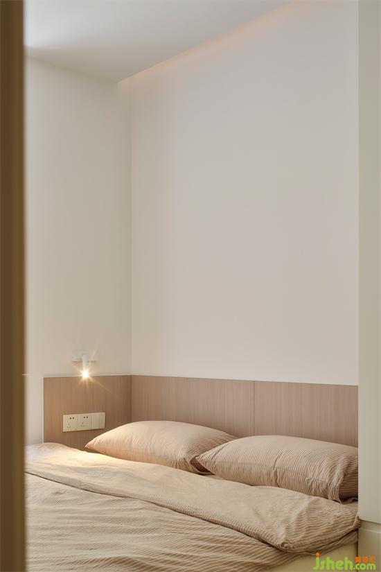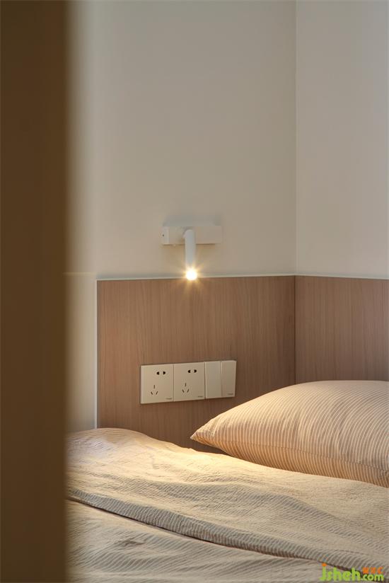 床头背景墙用木饰面作为装饰,自然舒适的木质,南京银城聚锦园家装设计也能让空间显得更加温馨舒畅,搭配无靠背床,让睡眠氛围更加轻松惬意。