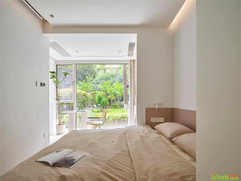 主卧和阳台相连通,作为卧室的延伸,不仅可以增加卧室的采光,还可以让视觉效果变得更加敞亮,尤其是直面大片的花草绿植,让卧室空间多了一丝积极美好的生活感。
