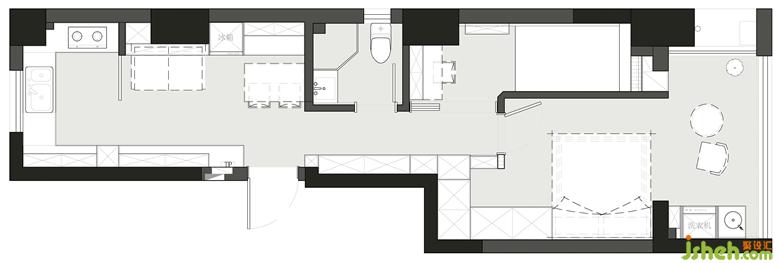 阳台集家务、休闲于一体,一侧墙面定制半开放式一体化的储物柜,南京银城聚锦园家装设计采用上吊柜+下地柜+洗衣机/烘干机的形式,地柜下方悬空处理,预留扫地机器人的空间;家装设计顶面安装嵌入式晾衣架,平整美观,洗衣晾衣一气呵成,缩短动线,实用方便。