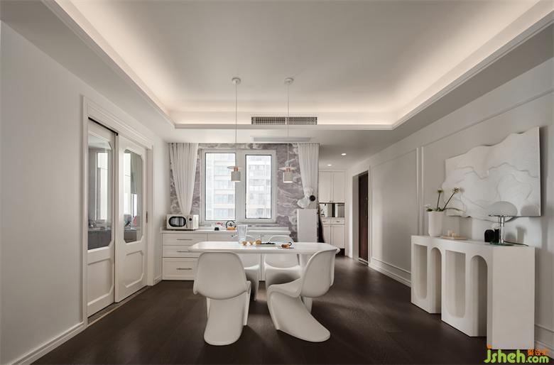 精细的设计,柔和的边角处理,温柔细腻的触感,大面积的奶白色,南京世茂璀璨江山精装房改造利用软装的搭配为空间注入亮色调,释放出空间的舒适性和亲密感;家装设计运用开放式的视觉艺术,让空间的居住感更温暖。