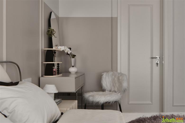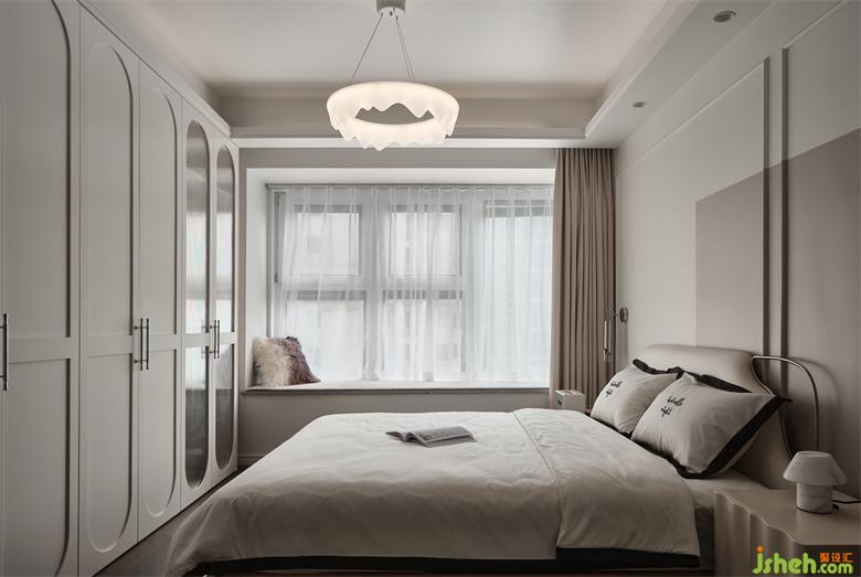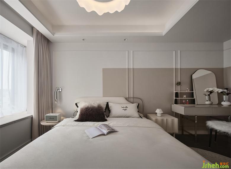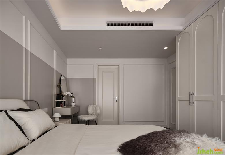 卧室内延续公共区的石膏线装饰,整体看起来非常精致优雅;南京世茂璀璨江山精装房改造墙面撞色与石膏线的延伸,卧室门也加入了线条装饰,透露着目之所及的轻法式精致。