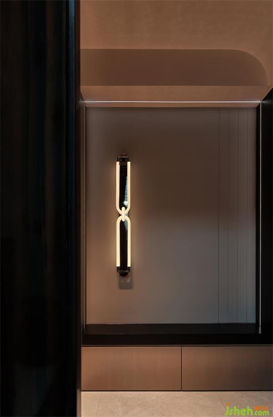在其中安装一款长条玻璃壁灯,南京藏龙御景家装设计通过嵌入式线性灯营造氛围,带来跃动而富有生命力的视觉焦点。