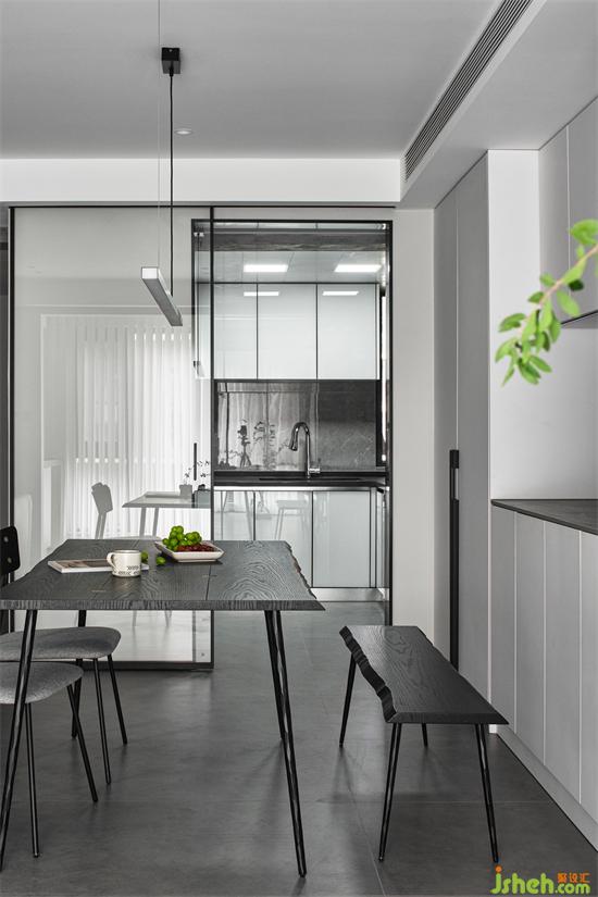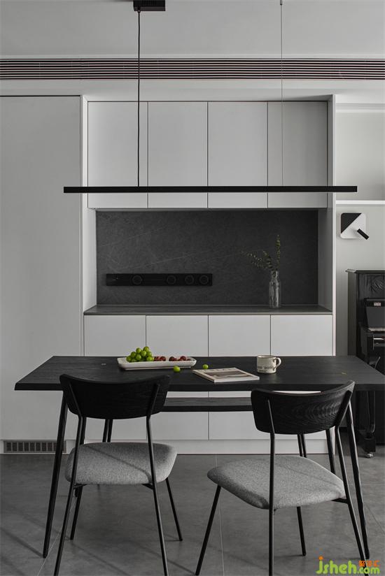进入屋内,一种归家的宁静和安逸扑面而来,满是令人放松的气息。客餐厅一体化的设计,南京中航樾府家装设计将空间的轴线贯通,开阔式的空间布局纳入更多的自然光线,令空间通透而明亮,减少压抑感和拥挤感。空间上以现代简约为设计手法,灰白色调为主,通过精致悦目的细节,使空间结构明确、外观明快简洁,整体呈现宁静雅致的舒适氛围。