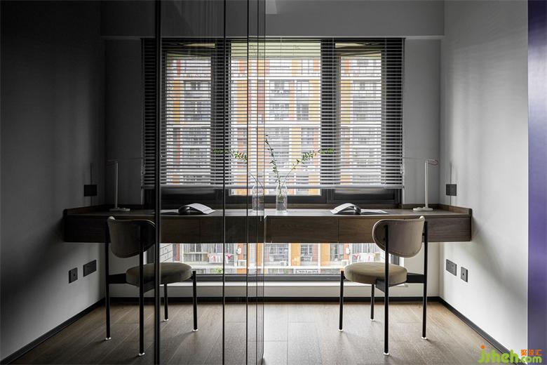沿窗边定制悬挑的书桌,减少对采光的浪费,为空间增添了轻盈感。南京中航樾府家装设计光线毫不吝啬的透入,在书中翱翔之时,抬头便是窗外的风景,使之成为安放心灵的居所。