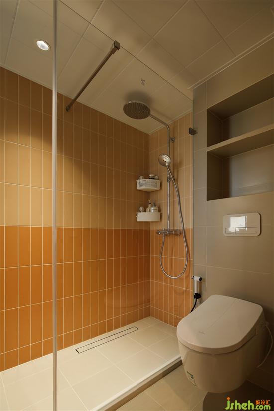 衣柜定制了骊住折叠门,柜门可以全部拉到一侧,大大节约开启柜门的占用空间,烟熏黑的木制纹理自带天然的气质美,与墙面颜色相搭配时形成冷暖色调的相互碰撞,营造出沉稳舒缓的感官体验。婚房设计在主卧内增加一处卫生间,只保留马桶和洗漱功能,避免了同时使用卫生间的麻烦,也让起夜去卫生间更方便。卫生间定制了同色的骊住木门,保证了色调的统一,中间镂空做了冰纹玻璃,带来一丝朦胧的美感。