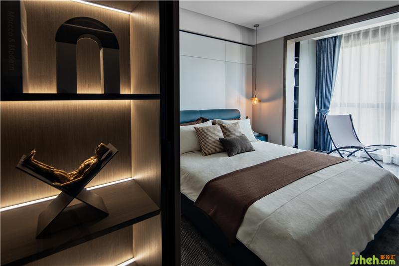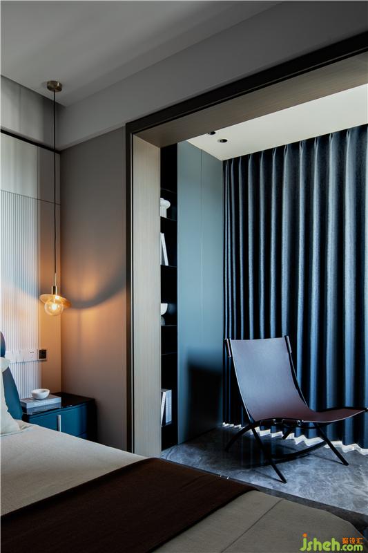 设计最大的灵感源泉来自业主。如果把私宅设计看成一场行为艺术,这场行为艺术就是设计师和业主共同完成的。重要的是身处期间的人,家具的形制和设计没有过分的突出,而是通过料的质感呈现空间的层次。,秉持着空间的调性,开阔的主卧大面积面向庭院开窗,毫无装饰的木色墙面,床品用色低哑却透露出不凡的品位,床头柜亦然临窗的书桌与休闲椅,勾勒出落地玻璃窗前阳光倾洒时的慵懒状态,思考空间所停留的印迹