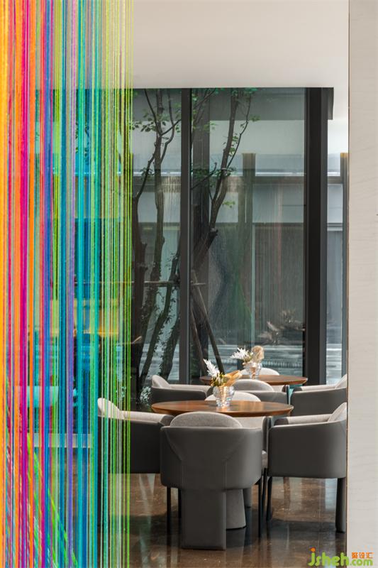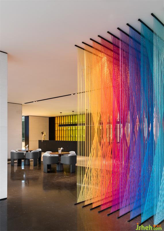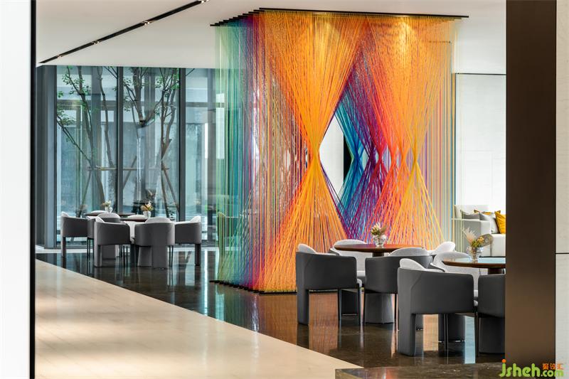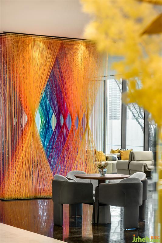 慈溪售楼部设计空间是 “ 有限 ” 的,也是 “ 无限 ” 的,当用心去感受,在空间中穿梭着的色彩带来的艺术感时,在当代生活方式的基础上,融合对未来的美好遐想,打造包罗万象的沉浸式艺术空间。以具有力量感和冲击力的手法,呈现律动和生命力。装置的艺术手法将虚与实进行碰撞,重新诠释和结合,进而呈现出对未来充满想象的生活方式。