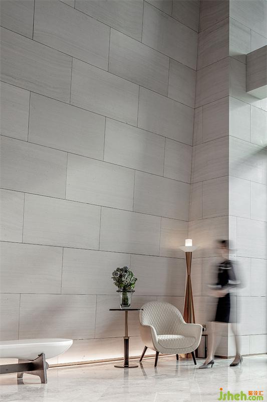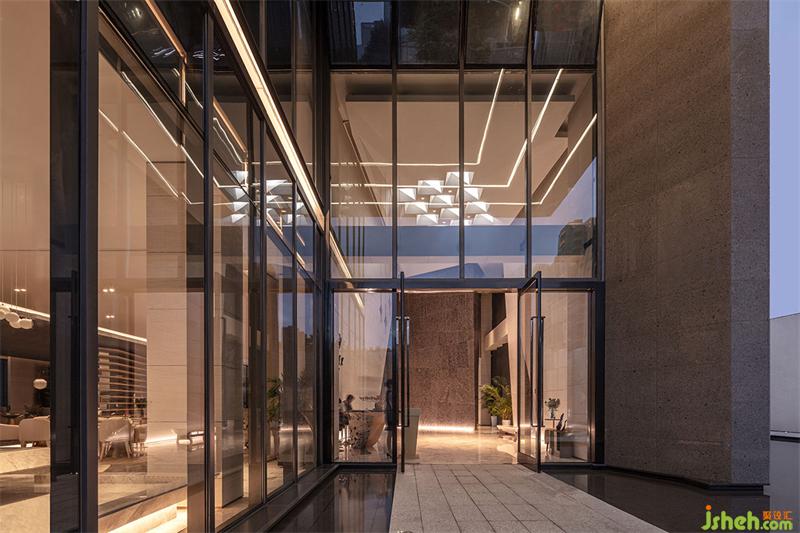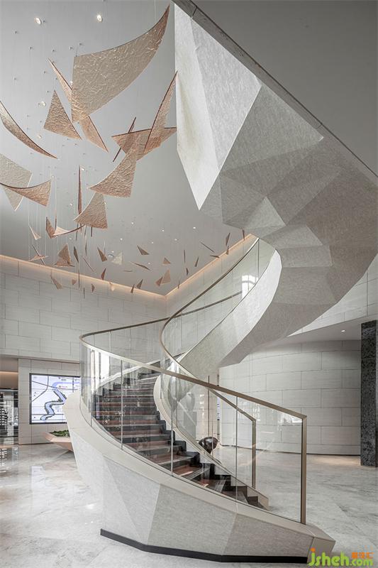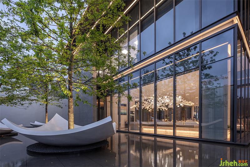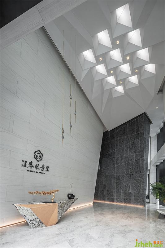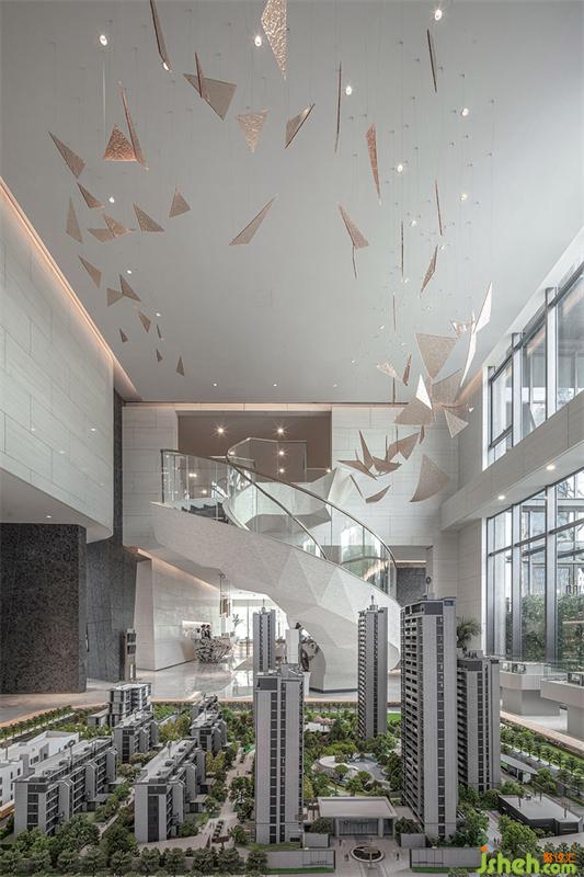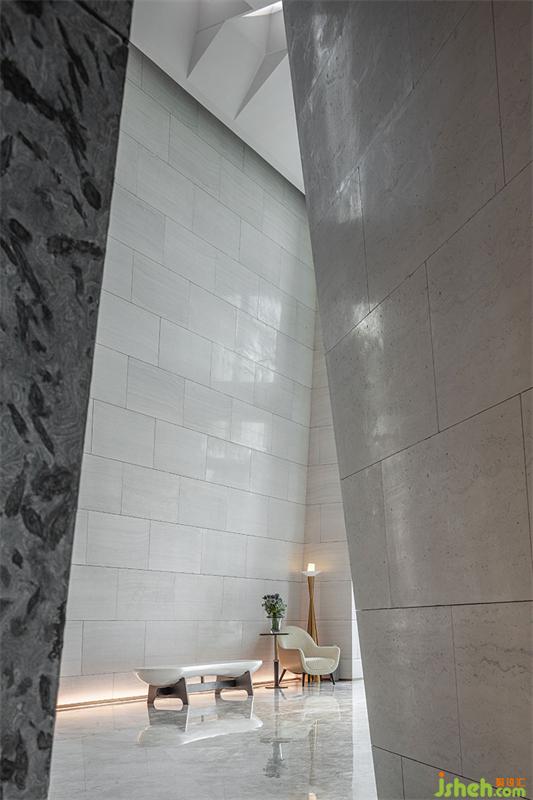 空间不是展示建构的场所,而是拥有减少让注意力分散的诱惑,当入口的视觉聚焦被艺术的主题思想而链接,由外而内,光柱丝线切割形成的几何幕墙,展现着理想生活城的理念,一半是功能,而另一半则是,艺术。