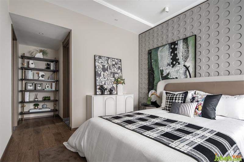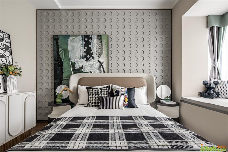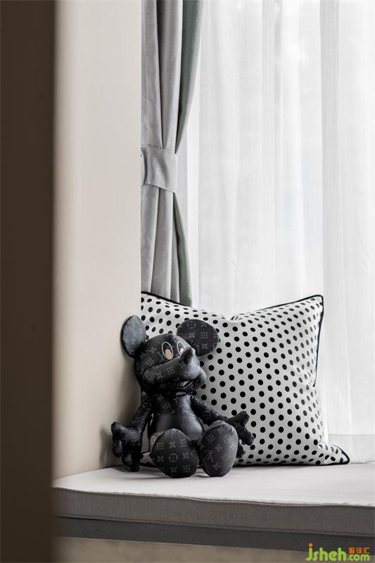 我们从舒适的角度出发,主卧以高级灰为底色,俏皮的米奇玩偶,随处可见的是绿色点缀,这无疑将主人公的生活品味揉进了空间里,卸下疲惫,坠入梦中,在场景里感受自然的美好与和谐。