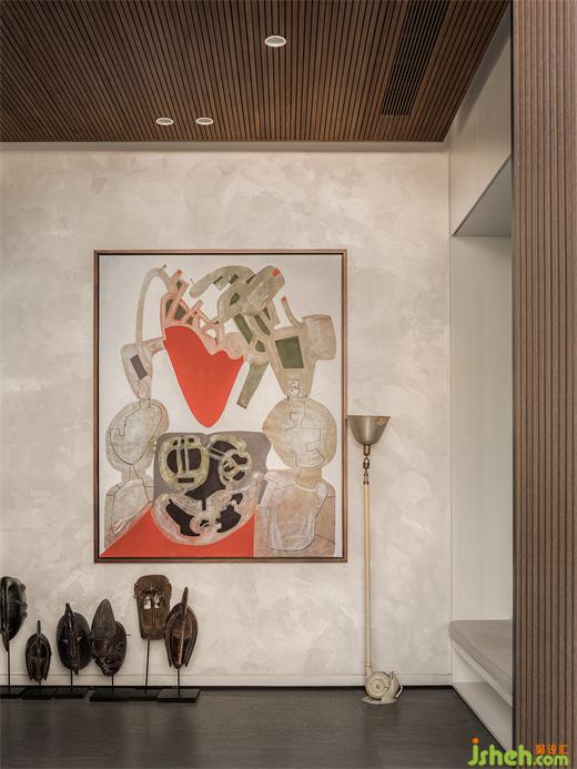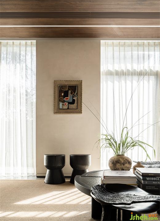 这栋艺术与自然和谐共生的房子,从建筑到室内的设计都相当特别。新亚洲自然主义风格的建筑外立面,别墅改造设计搭配不同于常规意义的侘寂风的室内设计,主张在平静的空间里,窥见极简的生活美学,强调事物与时间的关系,是一种简单质朴却精致隐奢的美。