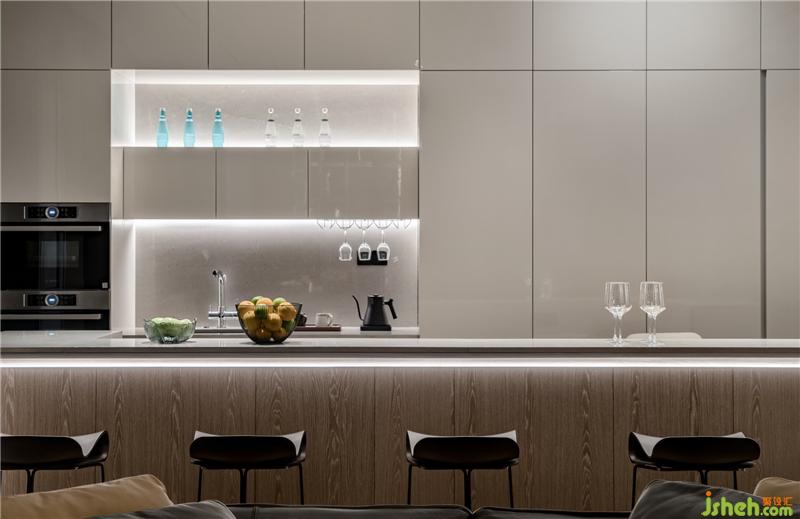 在吧台冲一杯香浓的手冲咖啡,抑或开一瓶醇香的红酒,与同事自如的交谈,前厅成为每个HDC designer的挚爱。空间的黑白主色调极简冷静,而木质地板温润质朴,是整个黑白空间的一抹暖色,中和严峻气质的同时为员工营造了轻松的交流与休憩空间用镂空的方形立式书架作为空间的隔断,区分出办公与休闲的界线。柔软的棕色皮沙发彰显质感,黑色地毯减轻走动的噪音,出于季节气候的考虑,公共空间的中心位置安置了一台壁炉,用于冬日取暖。舒适的家居感也能存在于办公空间中。