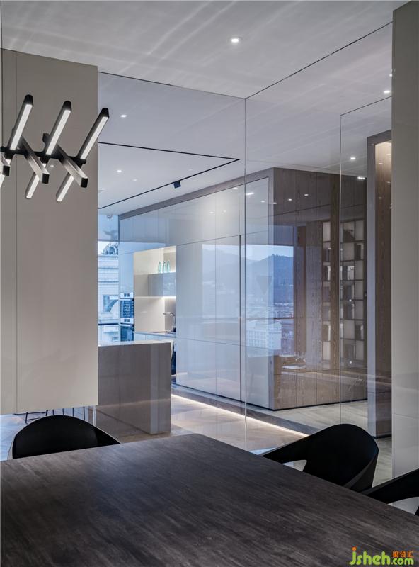工作室的灯光经过精心设计及布置,呈现柔和、亲切的氛围感。也为阴天而设计,用来调节阴雨天气带来的灰暗情绪。所有独立办公室天花未做繁杂的灯具,仅靠孔灯来解决照明,创造最柔和的环境光,即使长时间工作也不致视觉疲劳。空间氛围跟着自然光线的变化持续,保持某种思想持续沉浸的状态。
