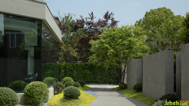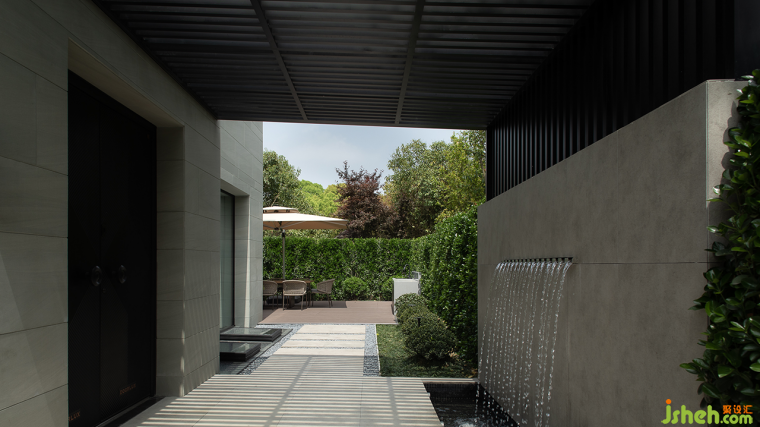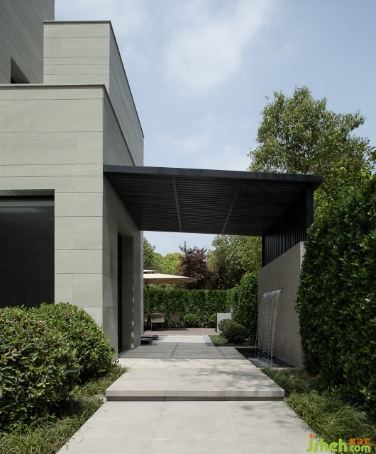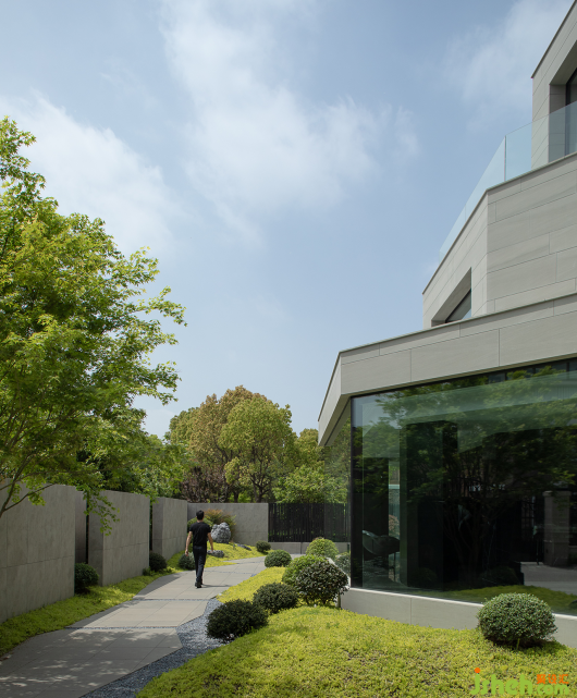 心随步转,水影长廊,住宅的入口巧妙地设于侧旁,既将绝美的景致引入室内,也为庭院增添了无穷的游玩趣味。