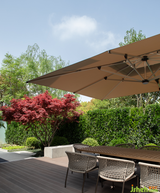 碧空之下,草木茂盛,错落有致的建筑以稳固的姿态展现出大气与自由。这便是湖山私宅予人的第一印象。