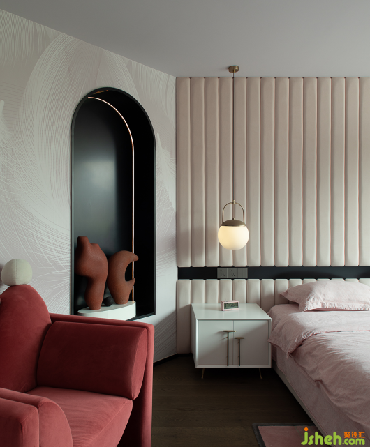 卧室,作为家庭中的私密空间,更应体现出居住者的品味与意志。拱形壁龛传递出古典的韵味,非常规家具则彰显出现代的活泼与灵动。传统的格局结合日常生活习惯,光影交错间,梦醒安眠风景各异……