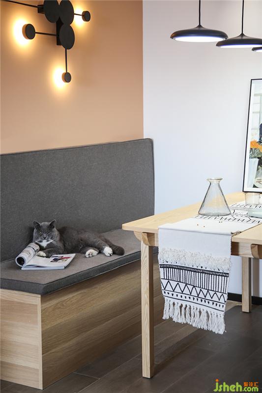 卡座简直是小户型的福星,就像去餐厅吃饭你是不是最喜欢选靠墙又临窗的位置?宽敞又安心,还能增大收纳。