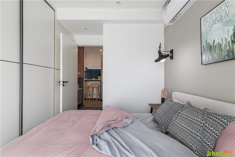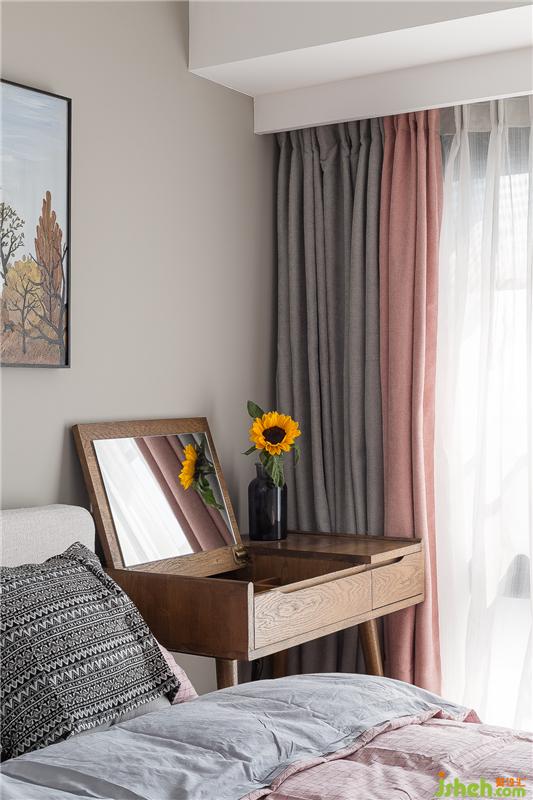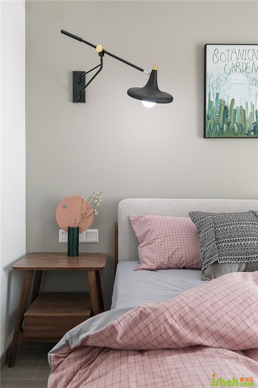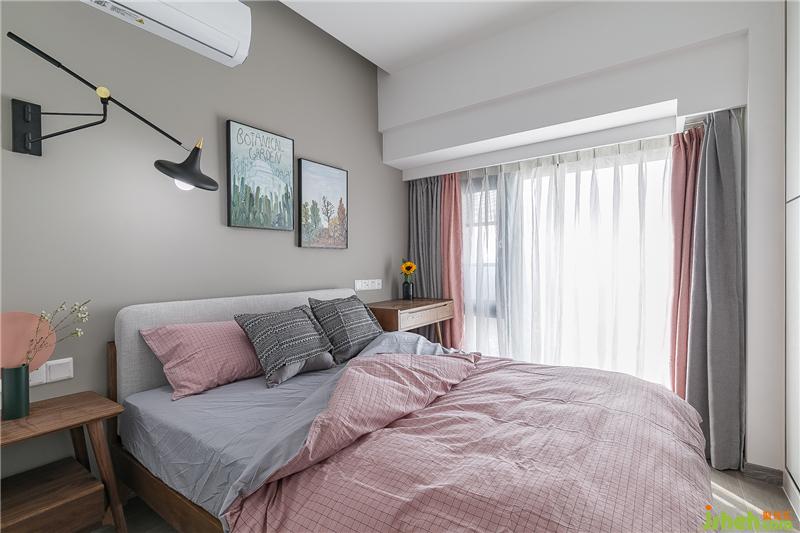 主卧的粉要温和静谧,灰色基调点缀小面积粉,舒适感更强。装修设计