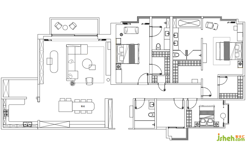 西厨无烟区miele橱柜、餐桌+中岛的形式使用更多元