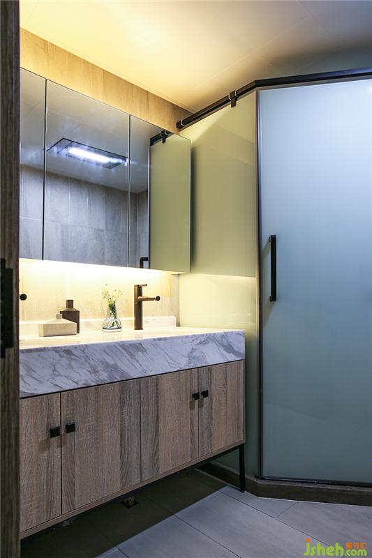 最大限度的利用好洗脸台和镜柜,各种护肤品、漱口水、牙线往里一放很方便。