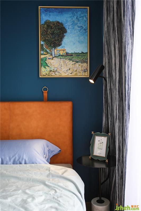 ▲深海蓝上挂着的真皮床背,已经不单单是一块墙面和一件家具,他们是喧闹城市中的避风港,给予郝小姐的是一夜夜的好眠,更是一个个香甜的酣梦,也许哪一天的梦里,她会身着旗袍行走在上海滩的街巷里。室内设计师