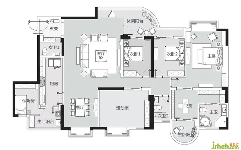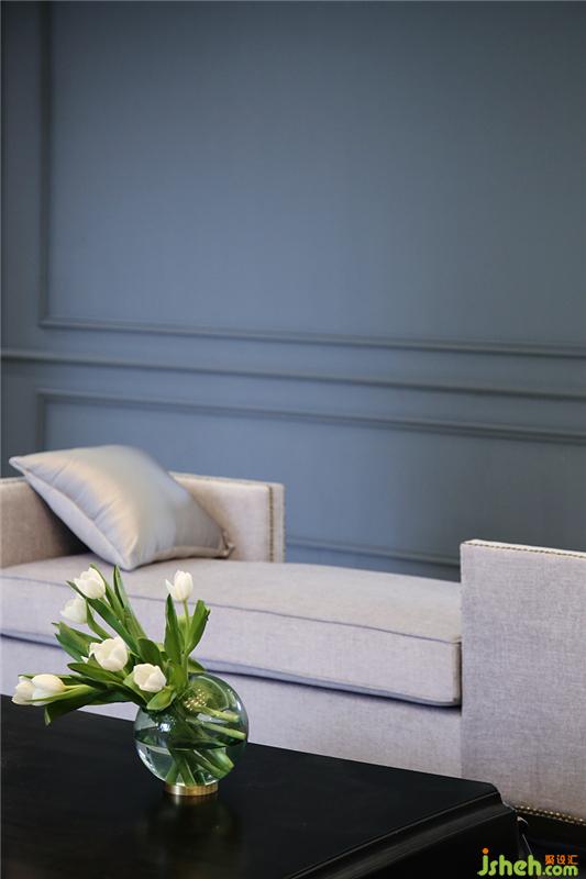 灰色的沙发简洁的造型减少传统美式的厚重,