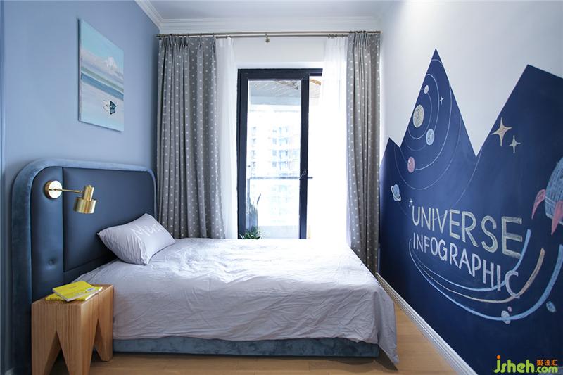 哥哥的想法天马行空,喜欢超级英雄乐于表达自己的想法,所以空间充满奇幻星空元素,空间充满趣味和英雄情结。
