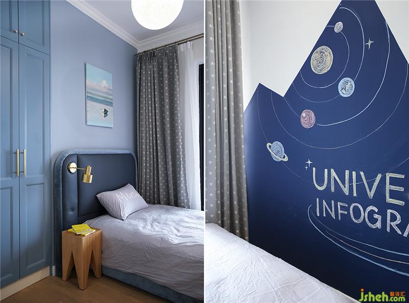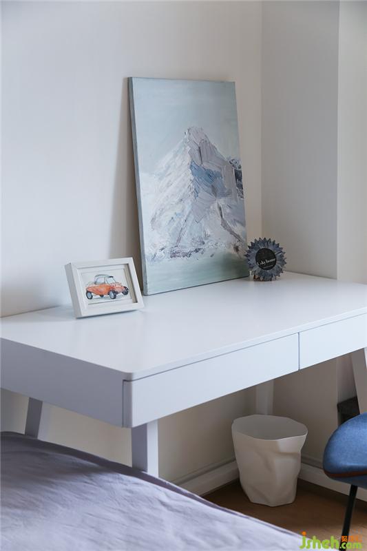 黄白色调的弟弟房间,干净明亮,如同一道曙光清透温暖。喜欢和哥哥一起玩乐高和滑板,所以两个房间的床都尽量靠墙房多一些活动空间。