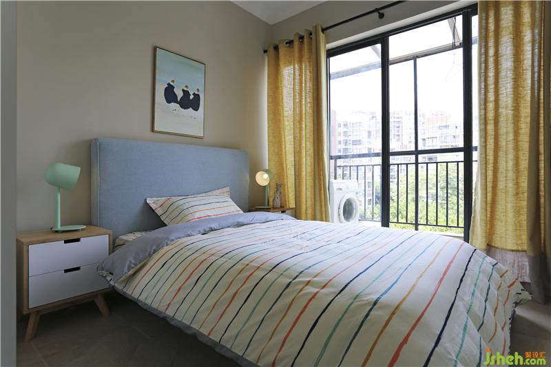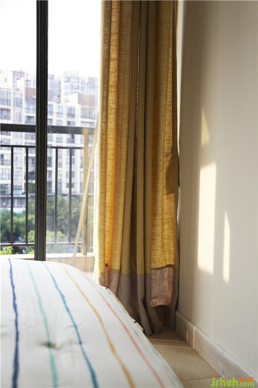亮黄色的亚麻窗帘和满满童趣感的床头灯