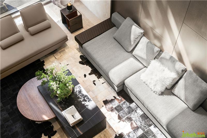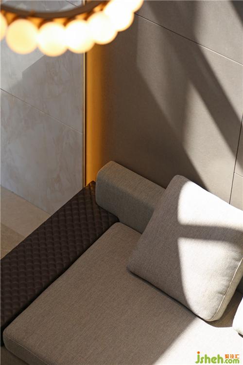 客厅是家庭活动的重心,沙发呈U型摆放,茶几方圆相嵌虚实结合,家族聚会、呼朋唤友都有坦然舒适的场所。
