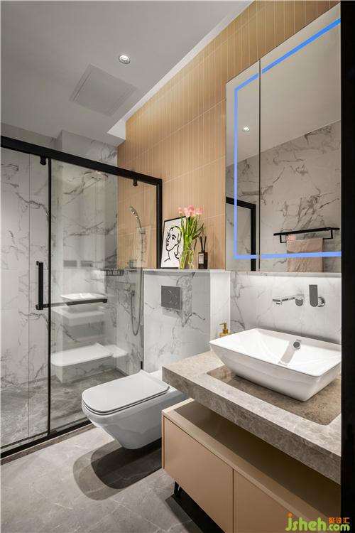 女儿房还配套了一个专属卫生间,小面积的粉色呼应卧室的整体色调。
