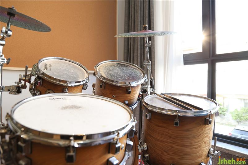 来到二层是大儿子和小儿子的房间,分别位于楼梯的左右两侧,大儿子的房间靠窗边的位置安排了架子鼓的位置,对面设计了一面灵感墙,东莞别墅装饰乐谱和演出的照片可以在此记录。