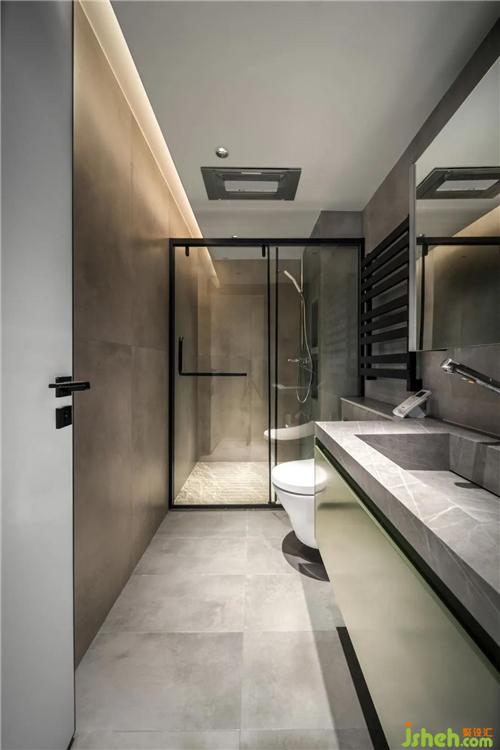 主卧主卫的墙面转角设计成了圆弧形减弱边界,舒缓通道的转折。