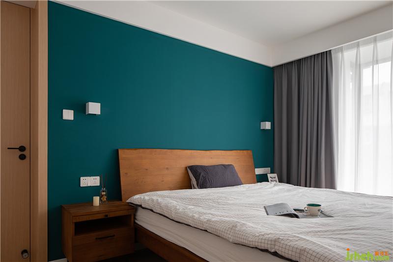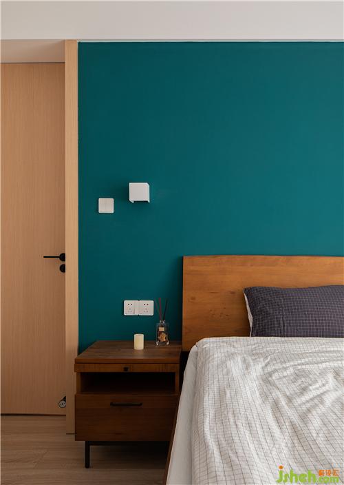 围绕着宁静舒适作为整个设计的中心思想,主卧采用了具有宁静力量的孔雀蓝为主色调搭配木材质,让屋主休憩时,南京装修设计能体会到身体自在舒适以及弥漫在周围的无声的温暖。