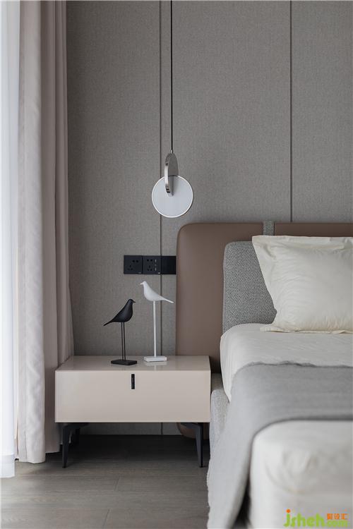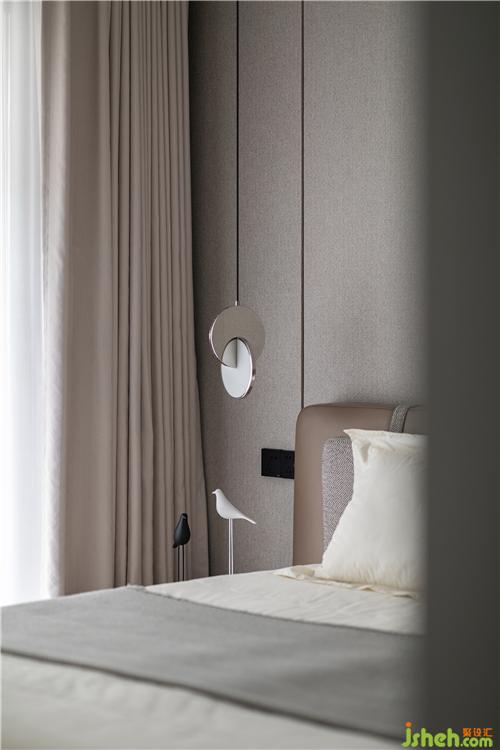 卧室以素雅的浅灰色与稳重的暖棕色为主,两种色调的相遇,气质与温暖,两者兼具相得益彰。