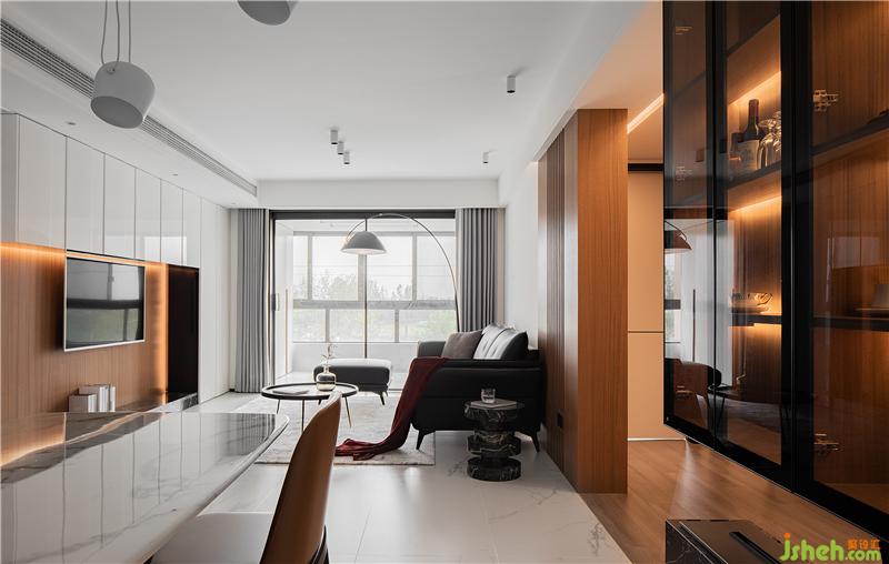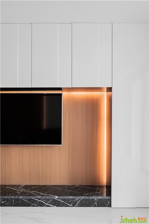 下部的悬空又让柜子显得轻盈不拥堵,让视线洄游自由开阔。