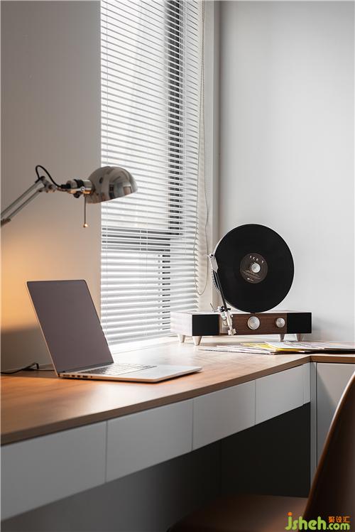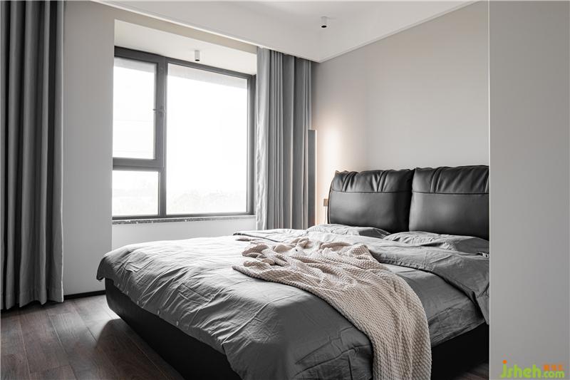 △主卧中,光线产生的层层叠叠不同调性的灰,消弭了黑与白的锐利,南京装修设计仿佛记录下生活点滴的黑白照片影像,