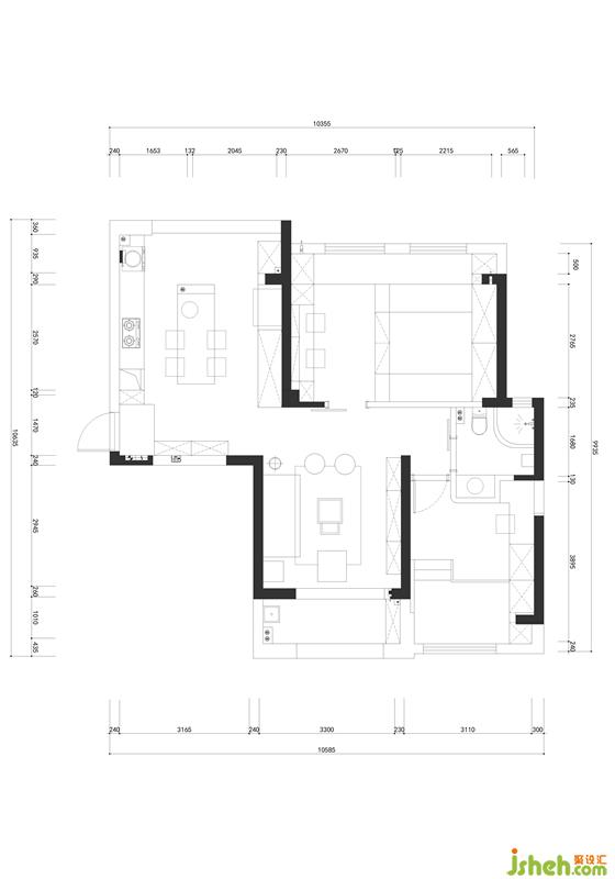 1、北阳台拆掉,并给餐厨,做成餐厨一体。业主平时只有两个人吃饭,所以用岛台代替传统餐桌。