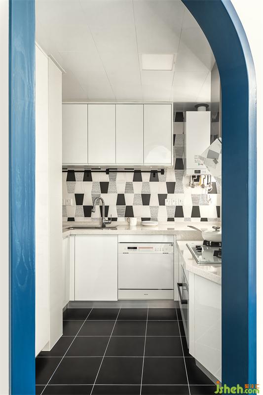 厨房不大,用黑白配的方式保留采光,显得更加整洁。