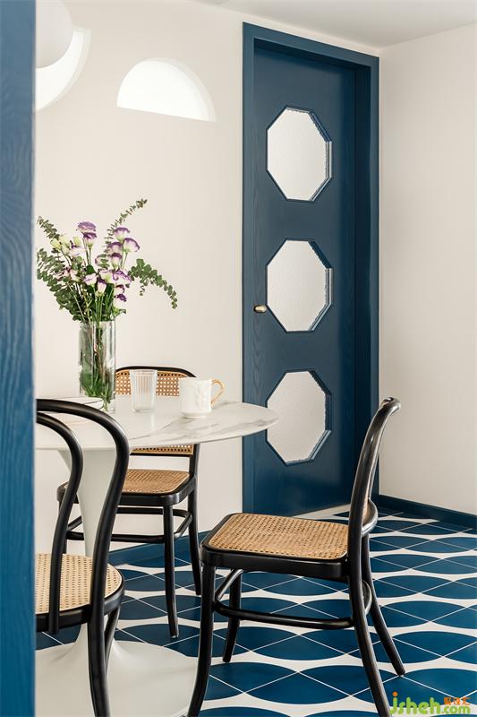 墙上视线以上的位置做了造型玻璃,房门也是几何形状的镂空加水纹玻璃,增加客餐厅的采光和趣味性,因为平时只有母女两人在家,也不好客,所以对于私密性有一定的让步,在面对问题的时候,可以抓大放小~