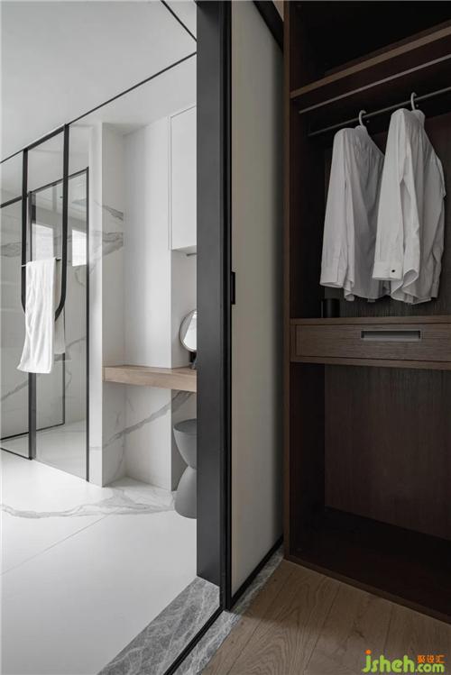 衣帽间与洗手间连接的位置做了一个梳妆台,空间利用到位。