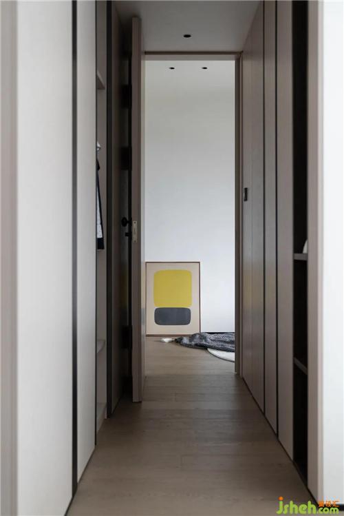 走廊两侧都做了柜子,可放置行李柜或者换季被褥衣物等,收纳功能强大。