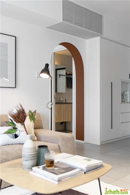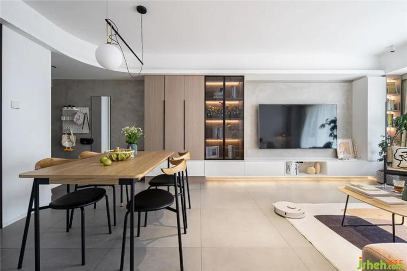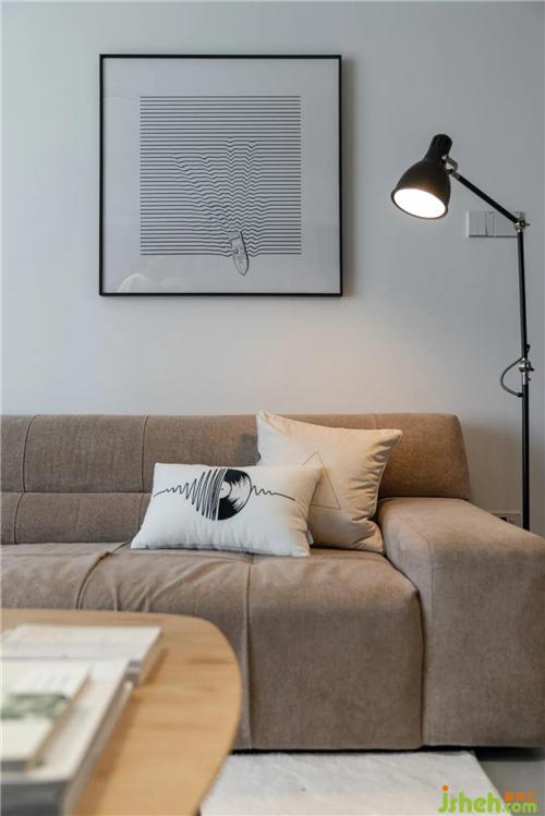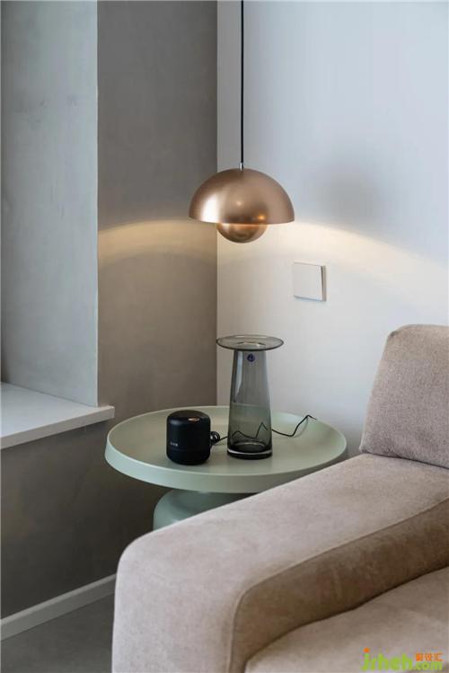 浅驼色的三人位沙发,憨态可爱,与浅青色的边几搭配相得益彰,低饱和的色彩总是耐看些,也不会产生突兀感深圳装修设计。两侧使用吊灯+落地灯,不对称的形式让生活平添一份趣味。发现了吗?艺术漆将电视区与沙发区连接到了一起哦~