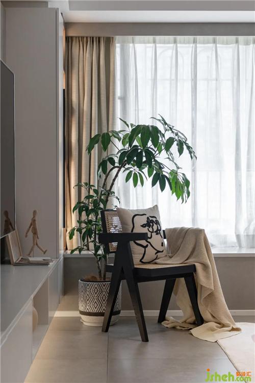 电视柜的一体化设计,既满足了收纳,也满足了业主放置乐高展示柜的愿望。一整面的艺术涂料从玄关处一致延伸至电视墙处,让视觉得到延伸。客厅窗台处设立一个开放书柜,平时坐在窗台上阅读充电也是十分便捷,开放的设计也许会难于清扫,但却能提升阅读的几率。(懒人如小编想看书时却受到了柜门的阻拦可能就直接放弃看书的念头~